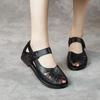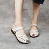 Középkorú Nők Divat Alkalmi Nyári Őszi Lapos Valódi Bőr Kerek Orrú Kivágott Szandál