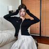 Női kivágott pólók Design Kötött felsők Lányok Y2K pólók Hosszú ujjú cipzáras pólók Tömör szövetek Divat Női bárruha