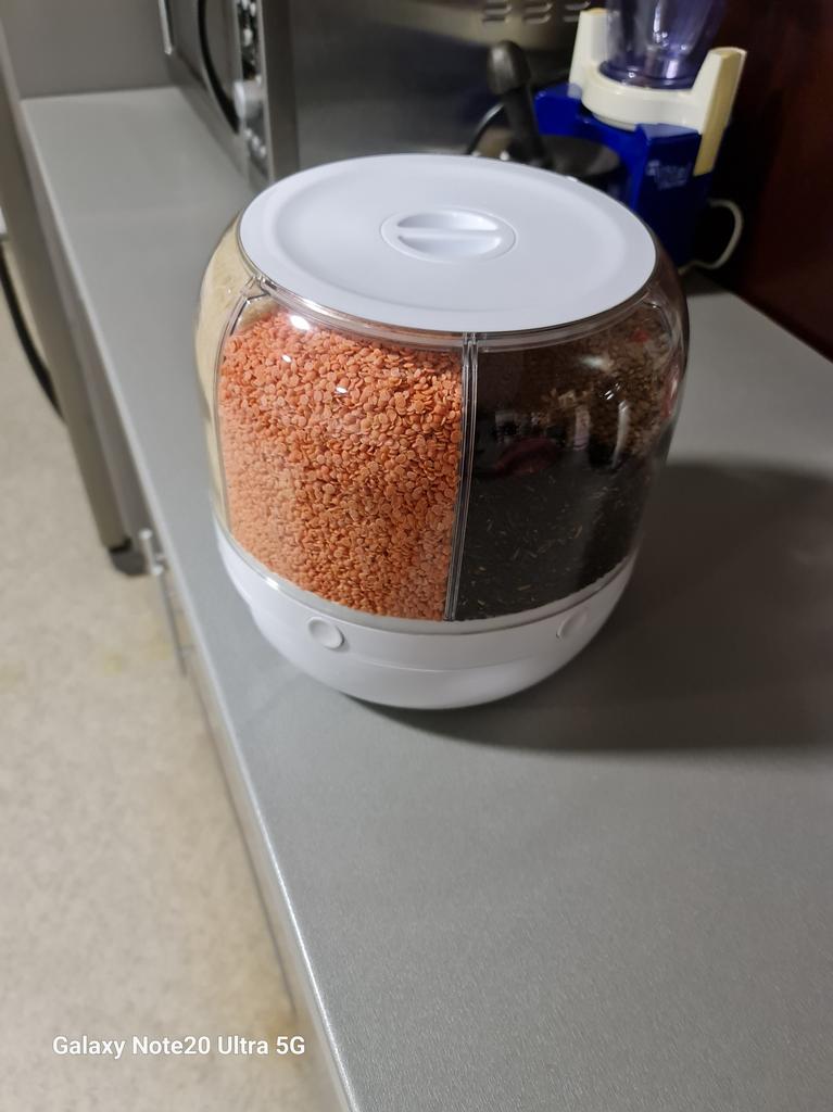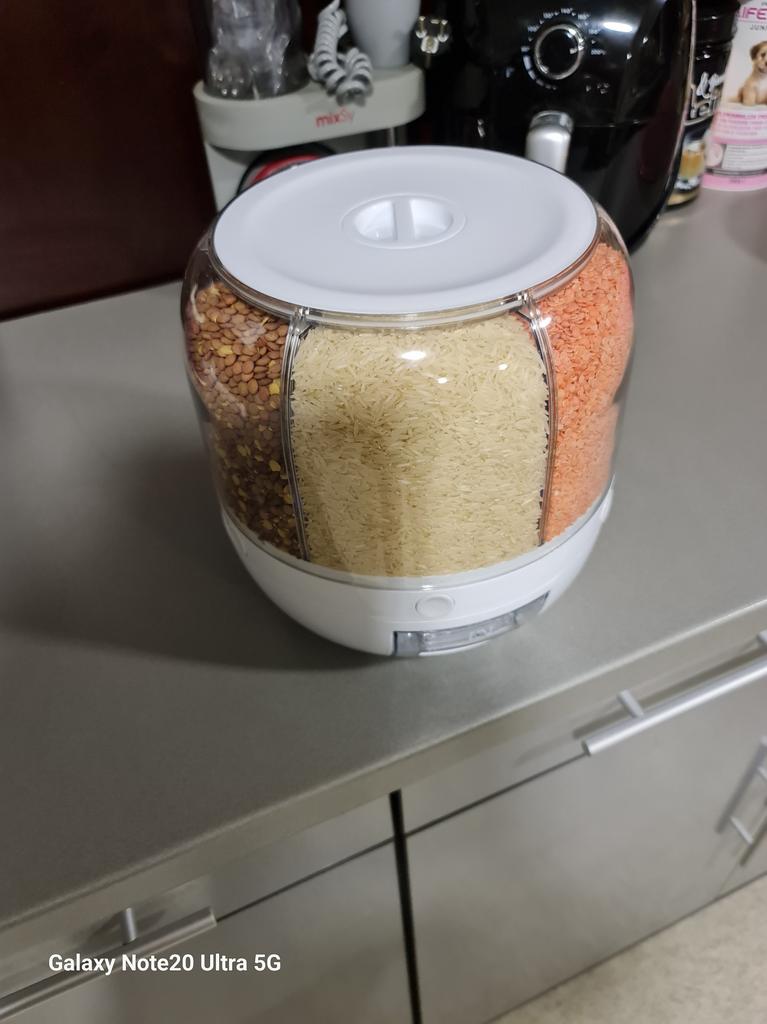 Konyhai tároló tartály, élelmiszer tároló tartály, 360°-ban forgó rizshordós zárt gabona adagoló