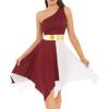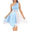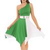 Női egy váll színes blokk táncruha Patchwork aszimmetrikus szegély ujjatlan ruhák táncruhák