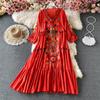 Vintage Women Dress Floral Embroidery Beach Dress Ladies Short Sleeve V-neck Cotton And Linen Boho Dresses Summer