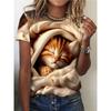Női felső nyári macska 3D nyomtatású póló, rövid ujjú, kerek nyakú, bő pólók