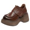 2024 Spring New Heightening Loafers Genuine Leather Hook & Loop Pumps Fashion Versatile Women's Platform Shoes