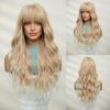 Blonde Unicorn Long Synthetic Ombre Brown Blonde Wig Wavy Wigs with Bangs Cosplay Wigs for Women Party Use Heat Resistant Fiber