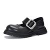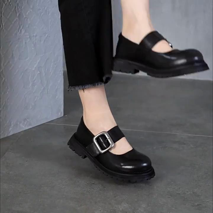 Johnature Divat sokoldalú fém csat, kerek orr, vastag talp Mary Janes cipők valódi bőr női cipők