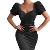 A puff ujj egy kis stílust és stílust kölcsönöz ennek a ruhának. Övkialakításával a női midi ruha jobban bemutatja karcsú derekát.