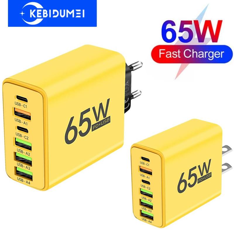 65W USB Type C töltő 6 portos PD Type C gyorstöltő fali adapter iPhone 13 14 15 Samsung Xiaomi Huawe mobiltelefonhoz