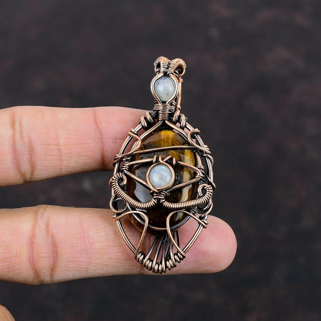 Gonosz Szem Tigrisszem Medál Rézhuzallal Tekert Medál Drágakő Ékszer Kézzel Készített Medál Szivárvány Holdkő Medál Réz Ékszer Ajándékba