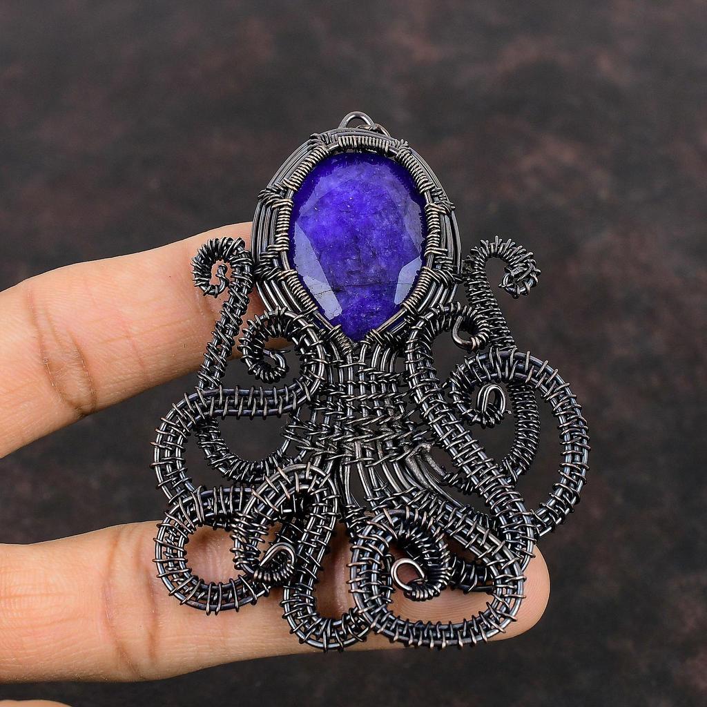 Faceted Blue Sapphire Pendant Copper Wire Wrapped Pendant Gemstone Jewelry Octopus Pendant Handmade Pendant Copper Wire Jewelry Gift For Her