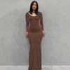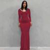 Női Egyszínű Hosszú Ujjú V-nyakú Alkalmi Hosszú Karcsúsított Ruha