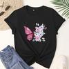 Butterfly & Floral Sprint Crew Neck T-shirt Casual Short Sleeve T-shirt For Spring & Summer Women's Clothing