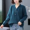 Spring and Autumn Women's V-Neck Sweater Loose Plus Size Knit Sweater Split Pullover Knit Tops Jumper