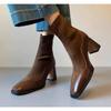 Női szögletes orrú magas sarkú csizma téli márkás bokacsizma vastag velúr cipő 2025 trend szexi hó Chelsea csizma elegáns női csizma