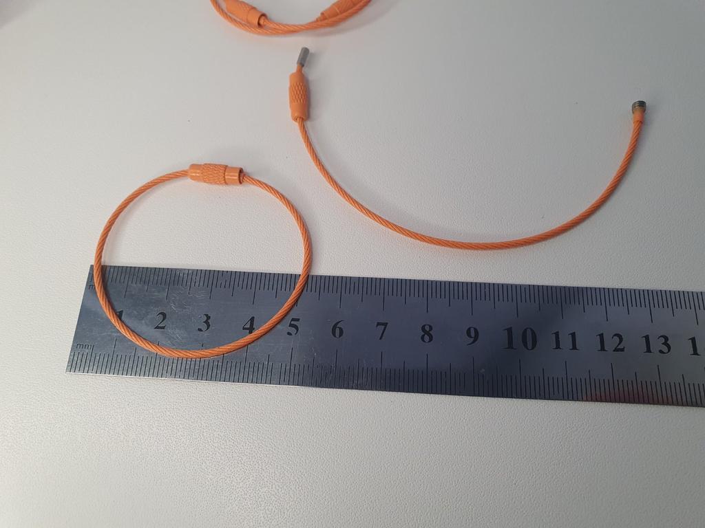 2. Használat: A zárógyűrűk kényelmesek, a menetes csatlakozó pedig tökéletesen illeszkedik a menethez, így biztosítva a biztonságos zárást. Csak hajlítsa meg a kábelt, igazítsa a gyűrűk furatához, majd húzza meg. Ha nehézségei vannak a hurok bezárásával (húzza meg a csatlakozót, amíg már nem lehet tovább húzni), nyomja a hurkot ovális alakra - ez segít a szálak igazításában a csatlakozóhoz.