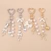 Sweet & Cool Peach Heart Pearl Chain Keychain with Bow Ribbon Pendant