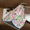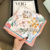Color Flower Silk Scarf Sweet Square Scarf Women'S Scarf Simulation Silk Neck Protection Scarf Travel Decoration Sun Protection