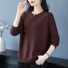 WTEMPO Women's Knitted Sweater Round Neck Sweater Mom Loose Knitted Long Sleeve Top