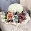 Kézzel szőtt Üreges Rózsavirág Szalmakalap Női Nyári Kicsi Friss Pasztorális Csipkepántos Nagy Karima Strandkalap