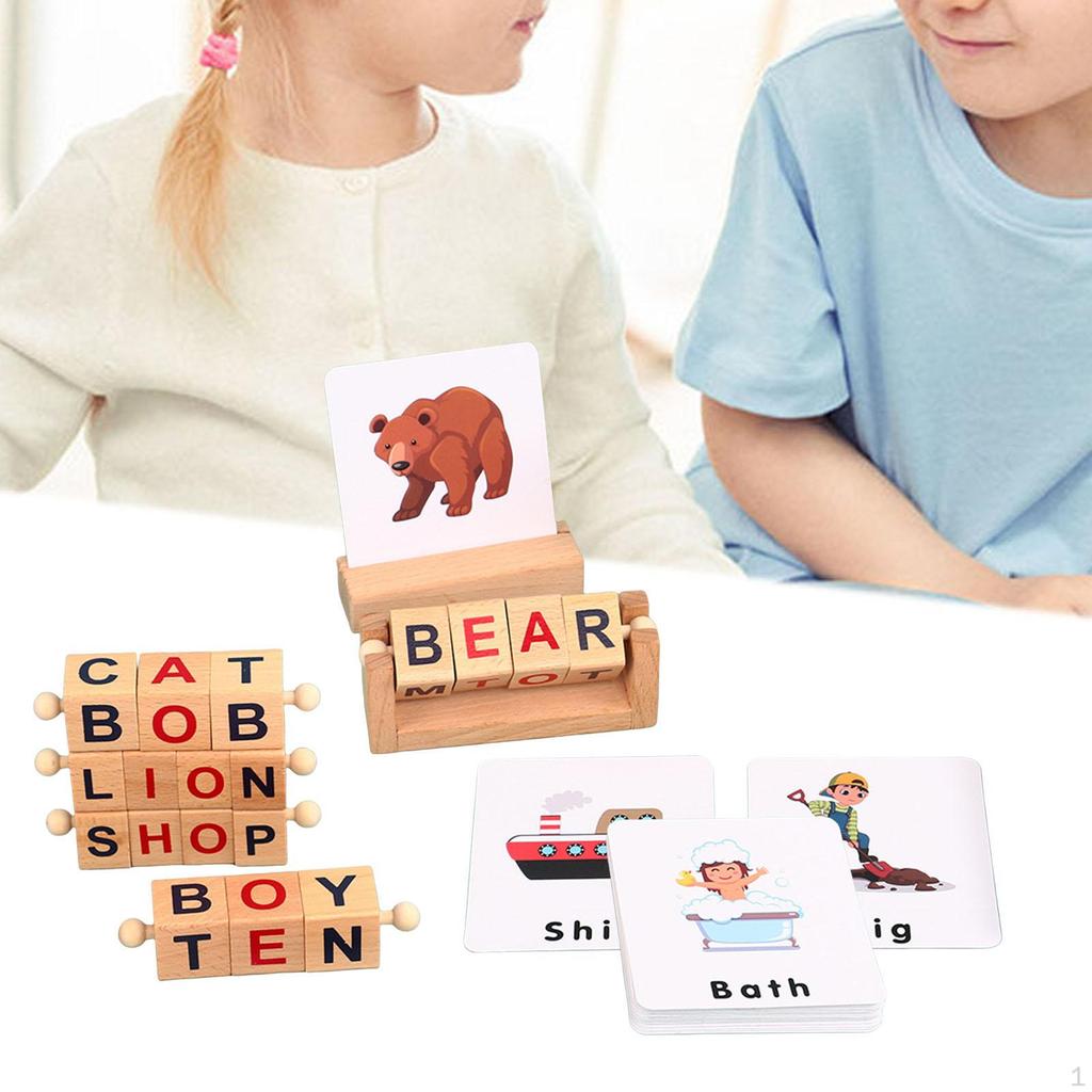 Wooden Reading Block Montessori Toy Matching Puzzle Short Vowel Rods Letter Spelling for