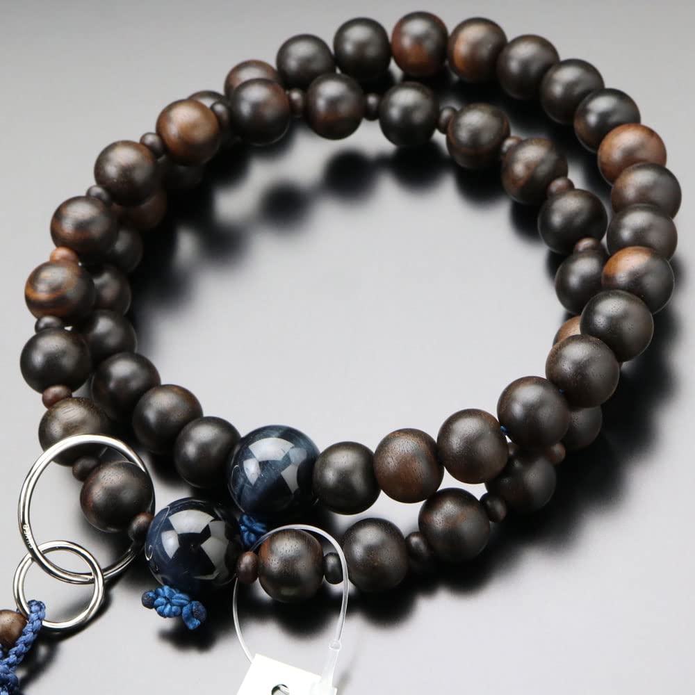 Jodo Sect Prayer Beads for Men Jodo Striped Ebony Blue Tiger Eye Stone Genuine Silver Ring Sanskrit Tenbo Prayer Beads Kyoto Prayer Beads Kyoto Blue