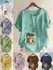 Női Divat Bagoly Mintás Rövid Ujjú Póló Laza Pamut Póló Alkalmi Laza Nyári Blúz Felsők Plus Size