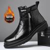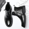 Férfi 2024 Brit Stílusú Fekete Bőr Motoros Csizma - Magasszárú, Vastag Talpú, Légáteresztő, Plusz Bársony.