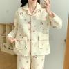 Spring and Summer Women's Silk Plaid Cherry Long Sleeved Loose Cardigan Home Clothes Sleepwear Loungewear Set