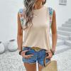 Women's Summer Loose Top National Style Round Neck Ribbon Stitching T-shirt