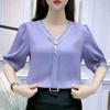Női kivágott csipkés V-nyakú sifon blúzok nyári felső rövid ujjú ing alkalmi felsők blusas mujer de moda