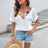 VEZFAA Női divat Alkalmi nyári tavaszi rövid ujjú V-nyakú blúzok és ingek