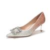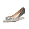 Autumn Luxury Ladies Pumps Rhinestone Square Buckle Women's High Heels Single Shoes Dress Banquet Wedding Shoes