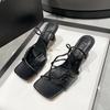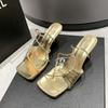 Gold Narrow Band Women Slipper Female Square Pinch Toe Low Heel Slides Sandal Flip Flops Mujer Shoes