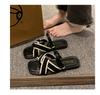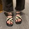 Slippers Women Summer Shoes Low Pantofle Shale Female Beach Slides Fashion Flat Luxury Cotton Fabric PU Rubber Rome