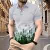Men's Summer Print Fashion Loose Polo Shirts Short Sleeve Turn-down Collar T-shirt Top
