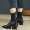 Women Leather Ankle Boots Pointed Toe Mid Heels Shoes Woman 2025 Trend Fashion Winter Elegant Dress Chelsea Boots Mujer Botas