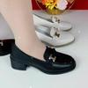 2025 spring and summer new soft leather British style small leather shoes women's soft leather shoes children versatile medium heel thick heel single