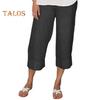 Women Pants Elastic Waist Mid-rise Wide-Leg Casual Pants with Pockets Solid Color Long Trousers Daily Wear