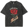 Romantic Rose-Print Women's T-Shirt Washed Fashionable Short-Sleeved Statement Features Oversized Tee Basics
