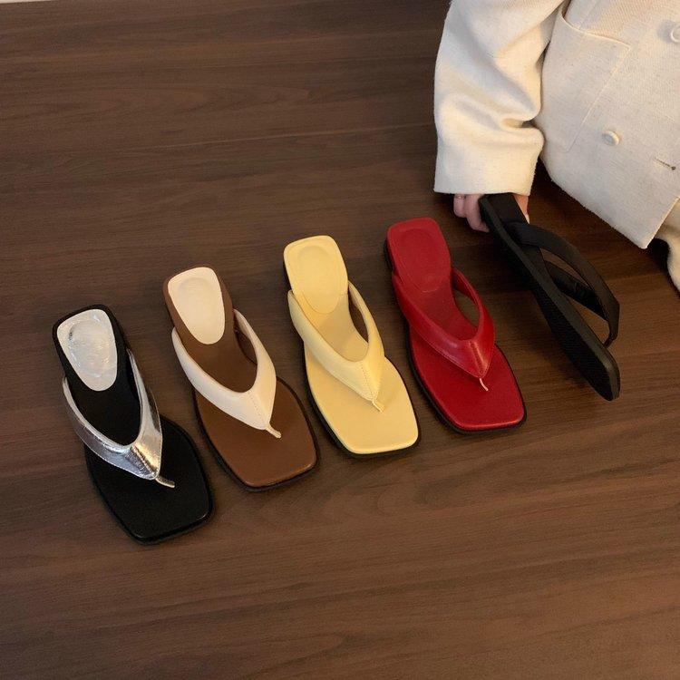 Fashion slope heel flip-flops slippers women's shoes outer wear summer seaside silver sandals beach shoes niche sandals