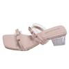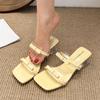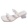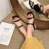 Square head bow crystal heel French sandals girl 2025 new summer high heel fairy style thick heel sandals sweet