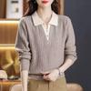 Hajtókás pulóver Divatos egyszínű Új póló nyakú Hosszú ujjú Felső G Középkorú anya tavaszi és őszi Karcsúsító és fiatalító ing