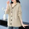 Női Tavaszi Egyszínű Kapucnis Plus Size Kabát Hölgyek Őszi Laza Temperamentum Kötött Felsők