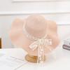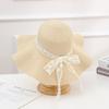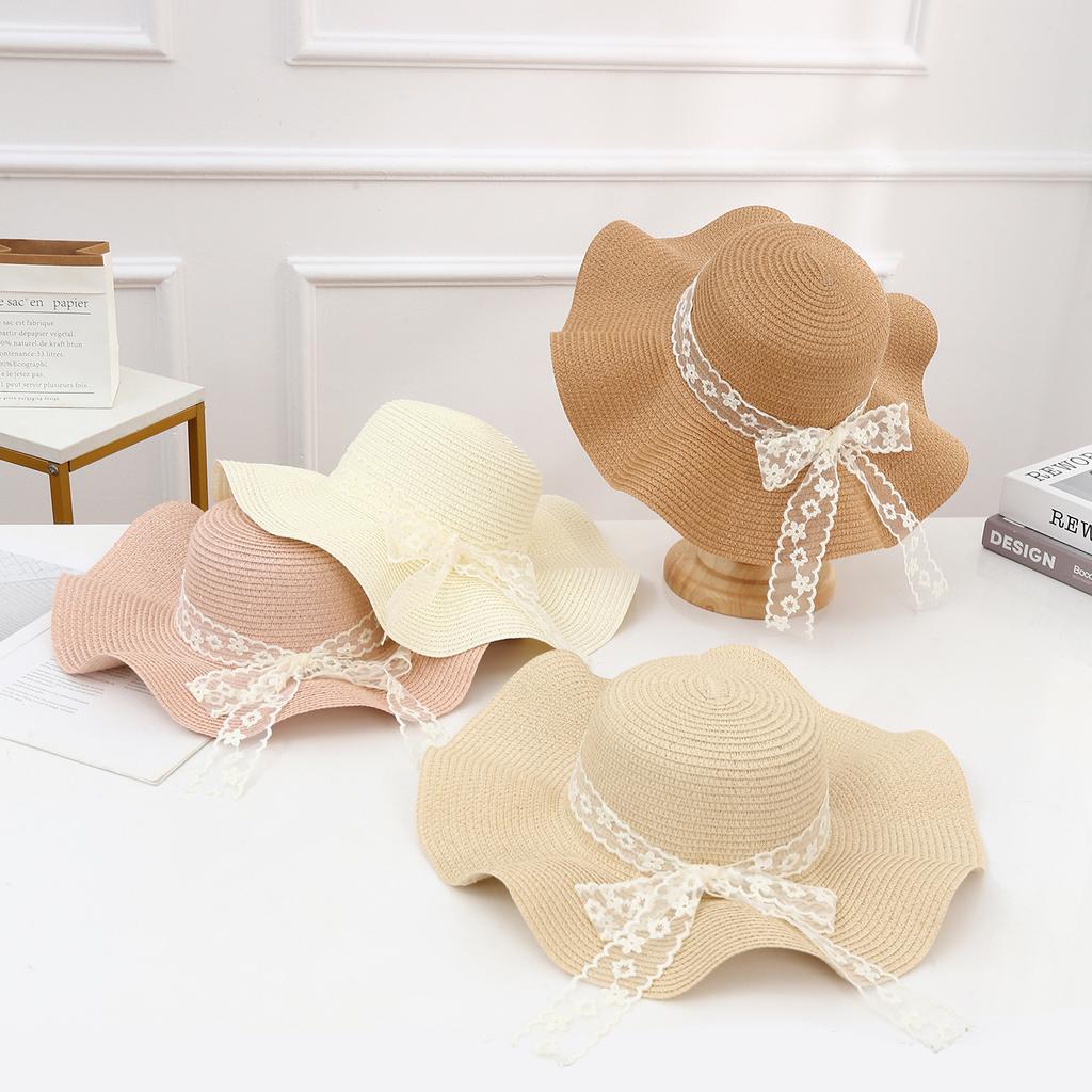 Sweet Outdoor Sun Hat Women's Vacation Beach Fisherman Hat Lace Strap Wavy Edge Grass Hat