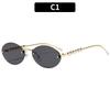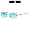 Ladies sunglasses, rimless oval sunglasses, pearl embellished sunglasses.