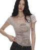 VAYLA Women Retro Sweet Spicy Skinny Tops Lady Bean Green Casual T-Shirts Girls Letter Portrait Print Short Sleeve Clothes