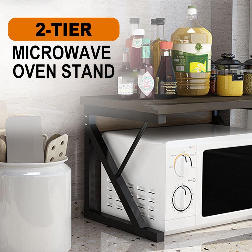 2 szintes mikrohullámú sütő állvány fa tároló polc Z alakú helytakarékos konyhai konzol szekrény rendszerező fém + fa 21,25x13,77x14,17in