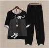 Women's Casual Loungewear Set Short Sleeve Top and Wide Leg Pants Floral Print Comfortable Sleepwear