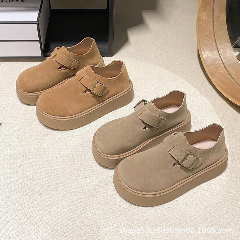 Round head platform casual Borken single shoes women's 2025 autumn new retro casual one-pedal lazy loafers women