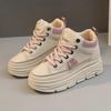 Women Sneakers Thick Sole Increase Walking Shoes for Women Leather High Top Boots White Vulcanized Shoes
