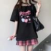 2KWEIRD Női Kawaii Vállat Kicsúsztató Póló Harajuku Édes Lány Fehér Felsők Y2k Esztétikus Aranyos Grafikus Pólók Japán Divat Póló